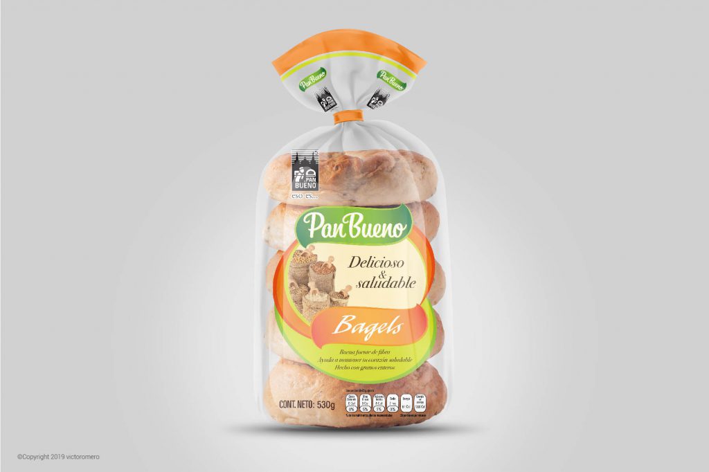 Diseño de bolsa para empacar pan de caja de diferentes presentaciones como es pan integral, pan de centeno y bagels.